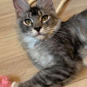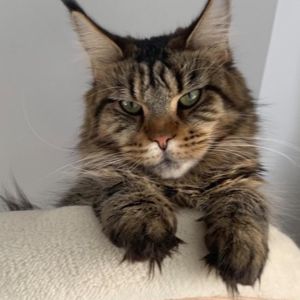 Une des plus grandes races dans le monde du félin! C’est une impressionnante masse poilue au look et regard sauvages, qui n’empêche pas le Maine Coon d’être un chat gracieux affectueux et tendre. Comme toutes les grandes races, le Maine Coon mûrit lentement et n’obtient sa stature définitive que vers l’âge de 3/4ans.